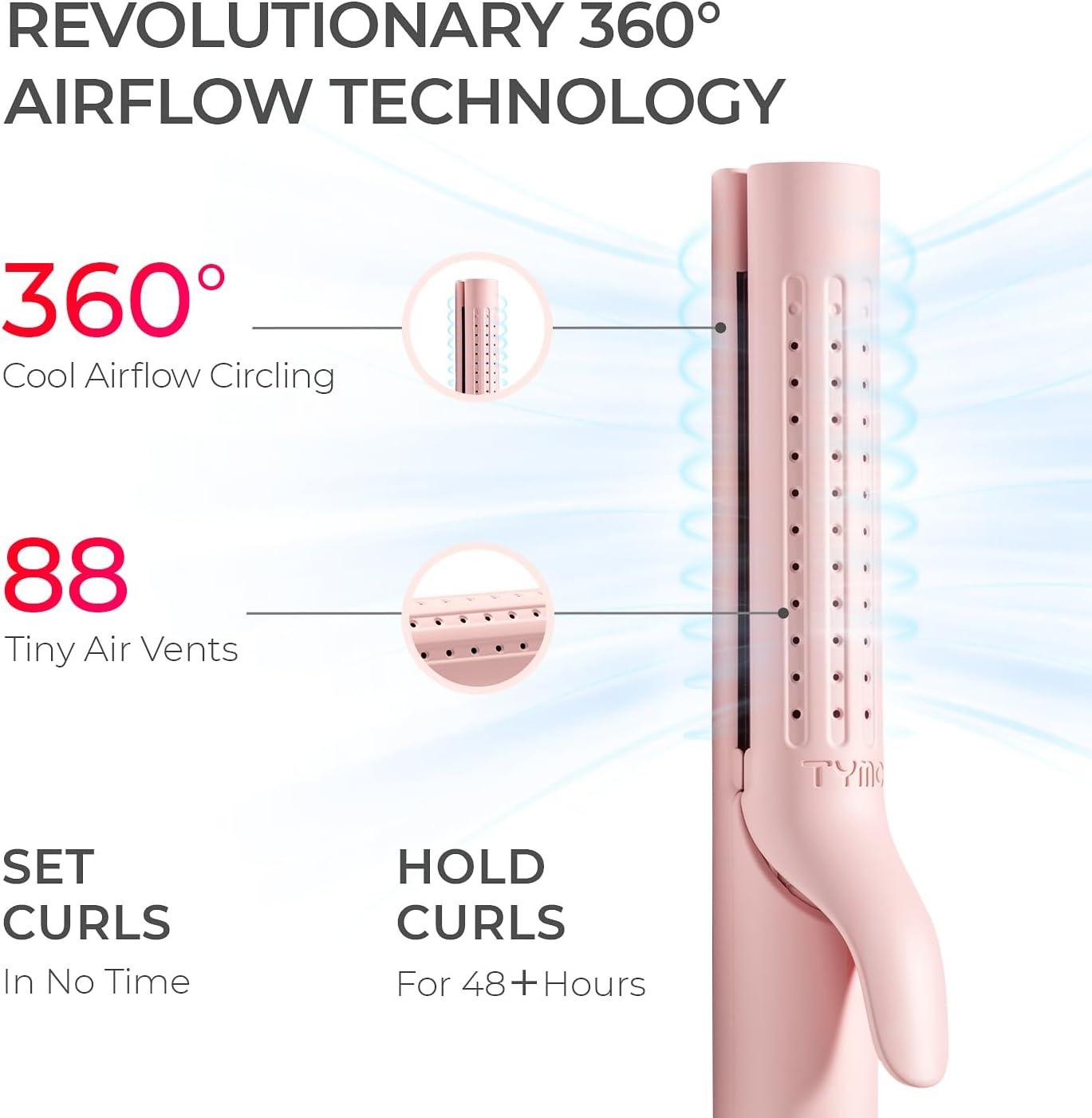 TYMO Airflow Curling Iron for Lasting Curls – Flat Iron Hair Straightener and Curler 2 in 1, Anti-Scald Ionic Curling Wand 1.25 Inch, 360° Cool Air, 5 Temps & Dual Voltage for Long Short Hair, Pink(Pink)