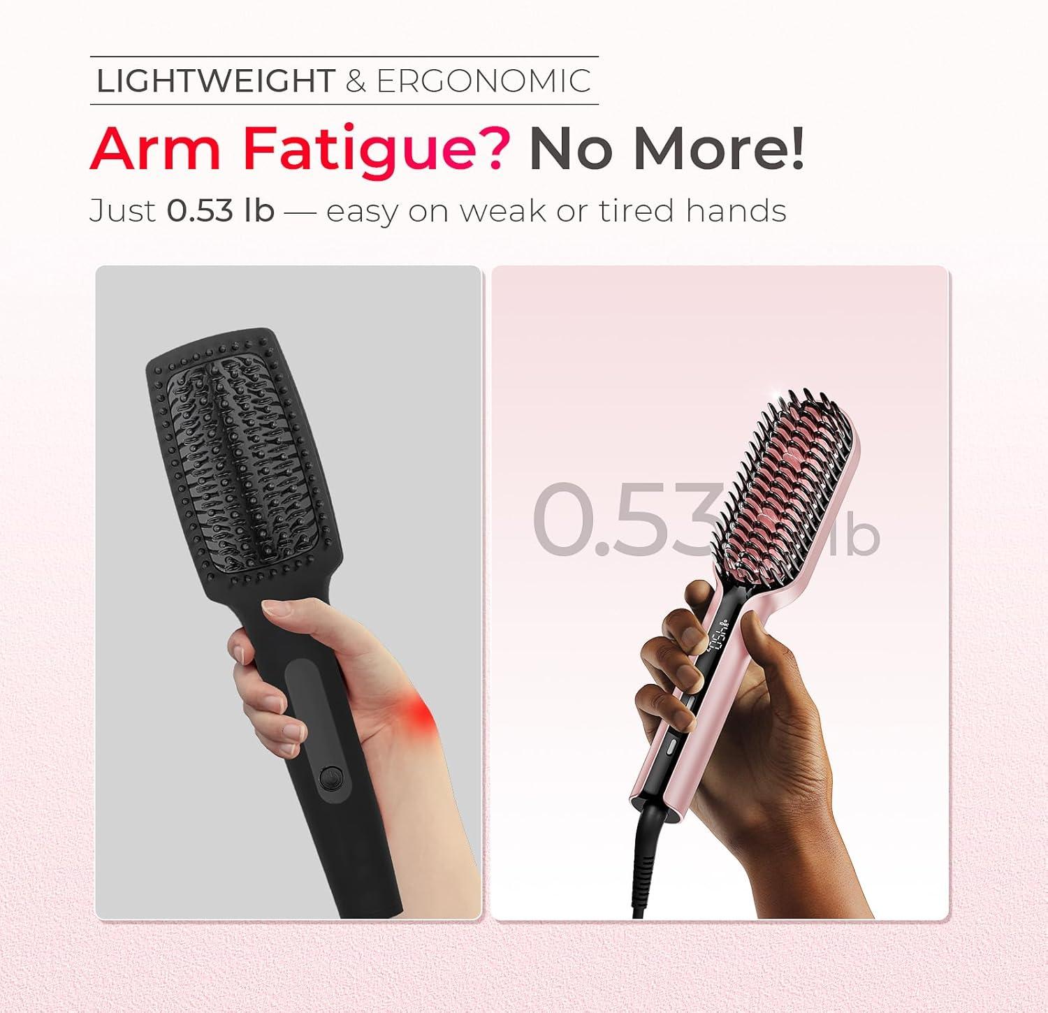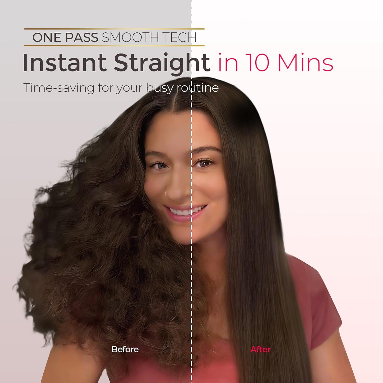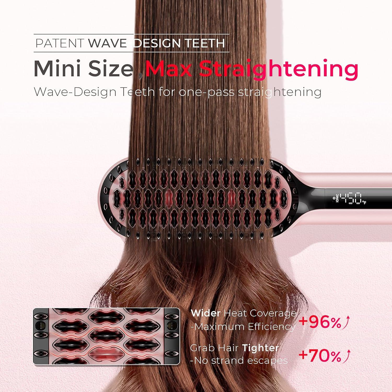 COMPACT YET POWERFUL: Equipped with patented Wave-Design Teeth for nearly 2× heat coverage and a tighter grip, the TYMO hair straightener brush delivers faster, one-pass results on thin hair and smoother, straighter styles on thick, curly hair — with no strand left behind, perfect for busy mornings or quick touch-ups.