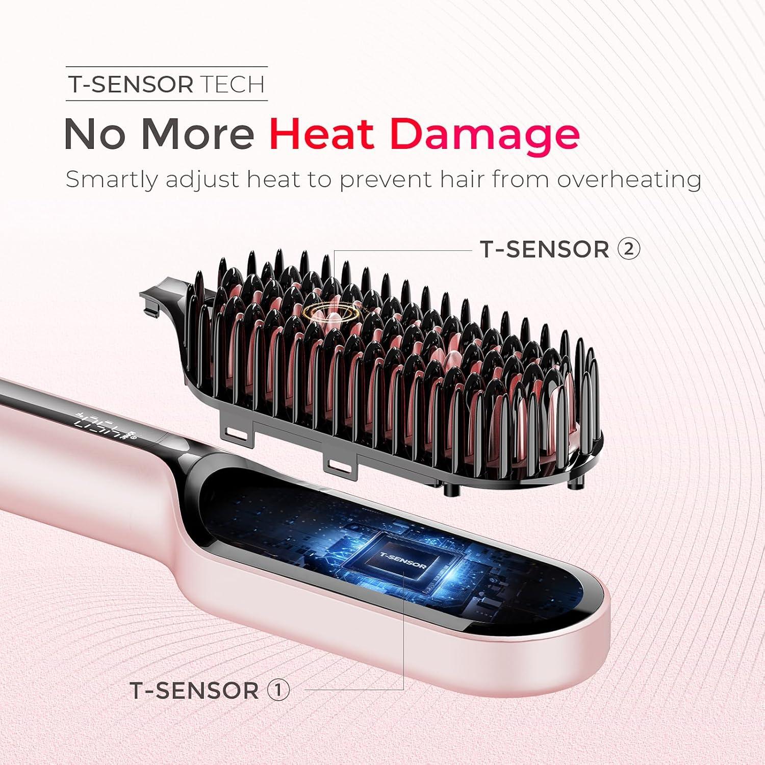 UPGRADED HEAT PRECISION: T-Sensor technology monitors heat thousands of times per second and intelligently adjusts to your hair in real time. Combined with PTC heating and 16 temp settings, this hot comb delivers consistent heat with zero loss — preventing the overheating and damage common with flat irons — giving you faster results while protecting your hair.